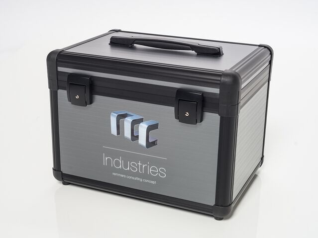 AD HOK Communication GmbH is gevestigd in Holzwickede en is een gevestigd en ervaren marketing- en reclamebureau. Voor het verkoopteam van een klant werd een aluminium koffer uit de Alu Design serie geselecteerd. De koffer werd aan de buitenkant digitaal bedrukt. Aan de binnenkant werd een op maat gemaakte schuimstof inzetstukken ingebouwd voor een veilig transport.