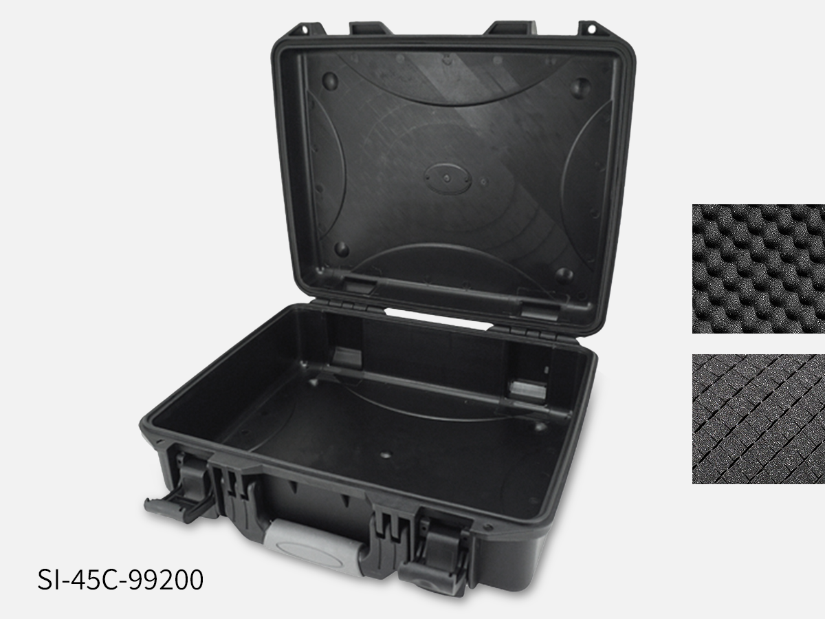 Livré avec mousse alvéolée dans le couvercle et mousse tramée dans le fond à découper soi-même.